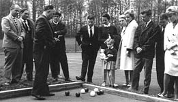 eröffnet das Spiel bei der Einweihung der Bocchia-Bahn |