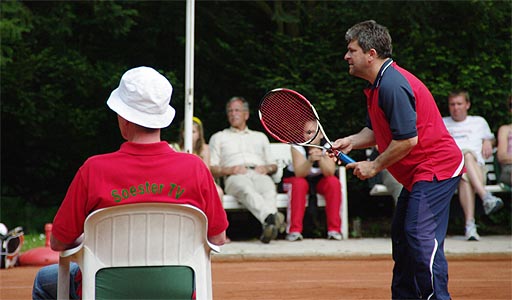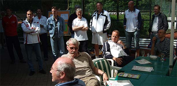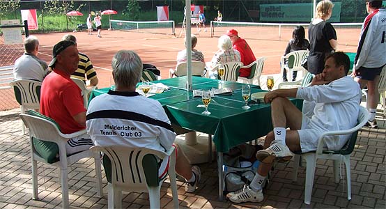 gut gelaunten Tenniscracks hörten aufmerksam zu,